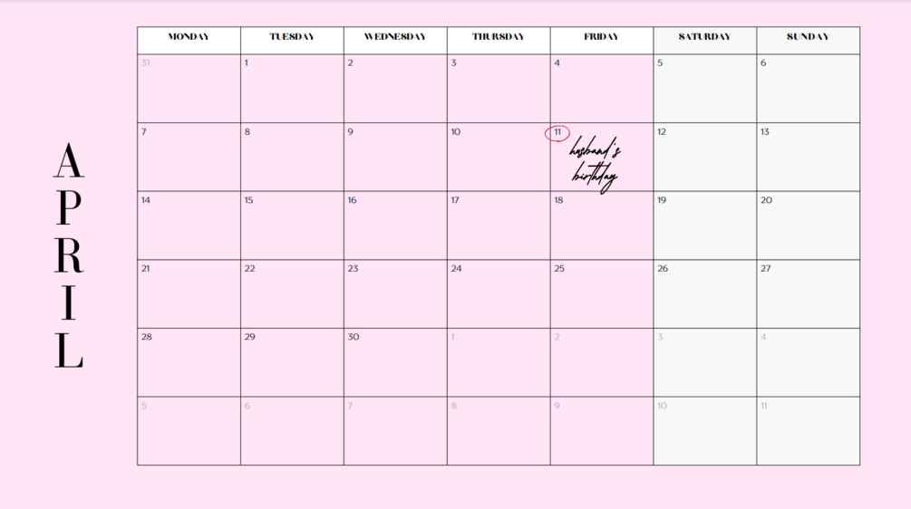 Perfect calendar for any use. Filled with color, simple but cute! Use in-house, use at work, use at school, as a gift, or anywhere else! Keep up with the year, plan early, and stay organized through this calendar. (Template; changes can be made).