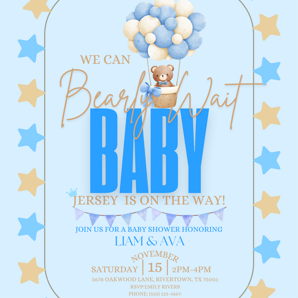 Bearly Wait (Boy Themed) Baby Shower Invitation Template